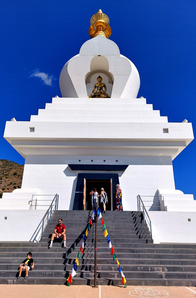| Dimanche 22 septembre 2024, 9h, 30°C Ascension du Cerro del Moro (939 m) dit "Las Antenas" (Les Antennes) avec Dani et Nico au départ du temple bouddhiste de Benalmádena, le Stûpa. |