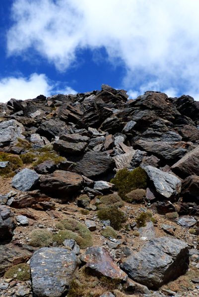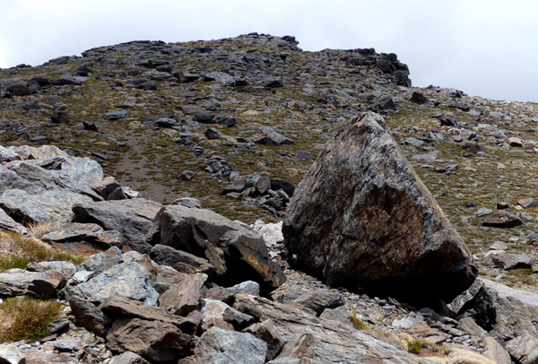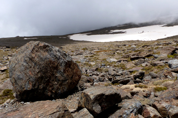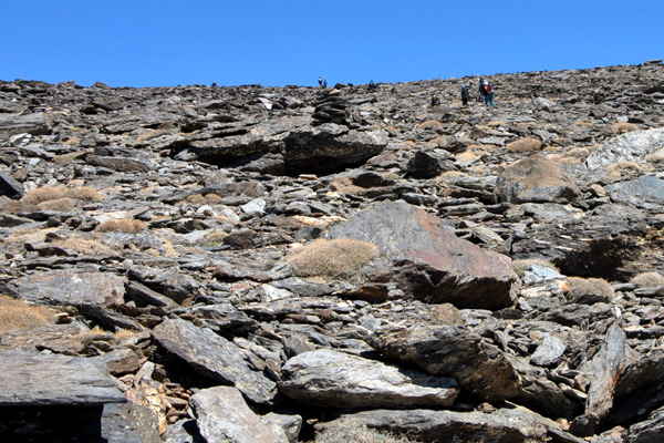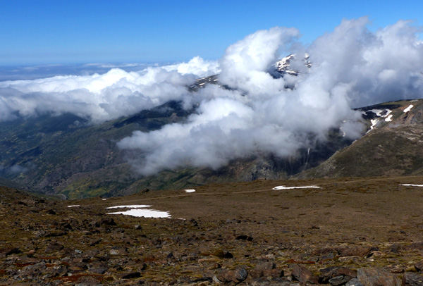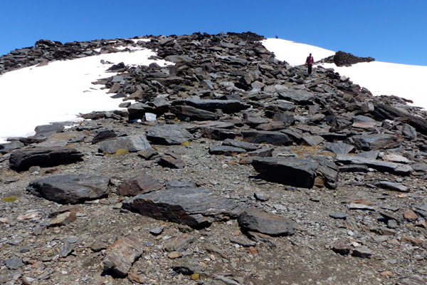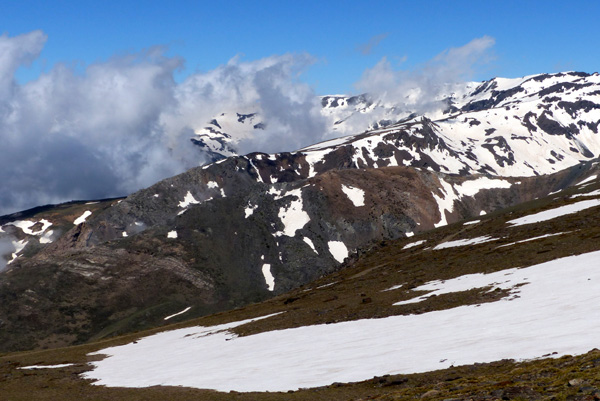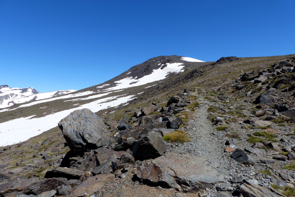 | Pic Mulhacén II (3360 m) droit devant... le pic Mulhacén (3478 m) se cache derrière |