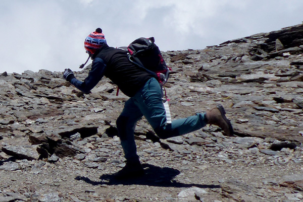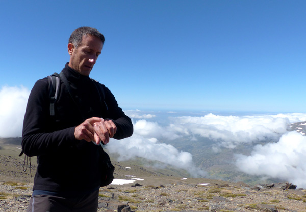 | Ferdi arrivera le premier au sommet du Mulhacén (3478 m) après une ascension aussi régulière qu'impressionnante |
