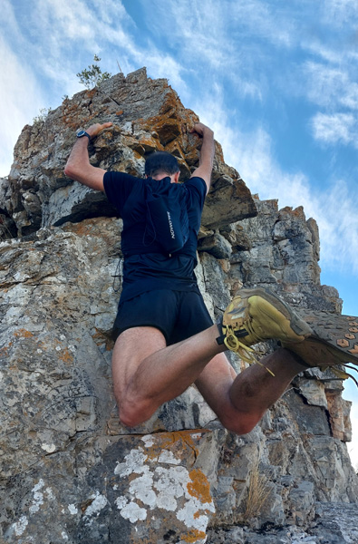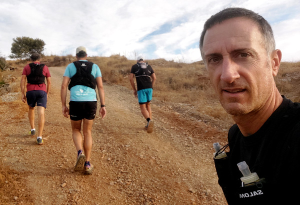 | Dimanche 28 septembre 2025, 9h, 28°C, ascension des Pics de Palomas (599 m) et de Jabalcuza (609 m) au départ de Churriana. Moi, David, David et Nico. |