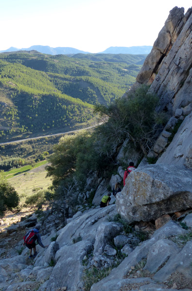 | 140 m plus bas, le reste du groupe, maintenant rassuré, peut entamer le pique-nique gourmet |