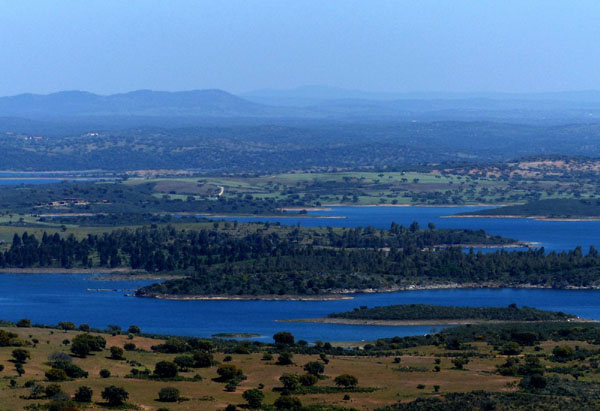 | Vue sur la campagne de l'Alentejo et le lac d'Alqueva, plus grand lac artificiel d'Europe (250 km²) |