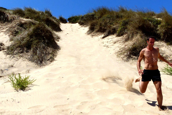 | Leçon de conduite sur l'Estrada da Praia, piste qui relie la plage de Bordeira à celle d'Amado |