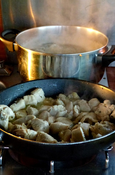 | Au menu : poulet au citron et aux herbes, pâtes à l'ail, crudités et "vinho tinto" portugais ! |