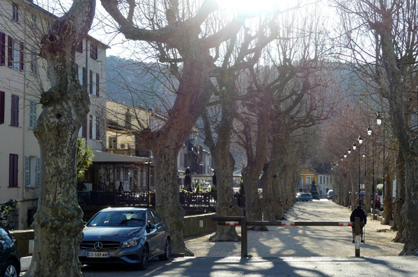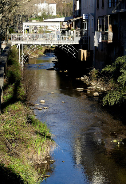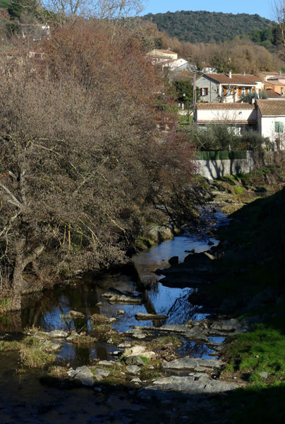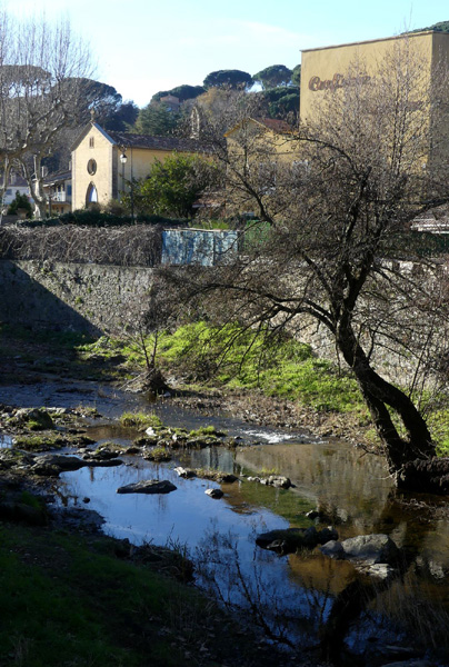 | La rivière le Réal Collobrier dans la courbe de laquelle est blotti le village de Collobrières |