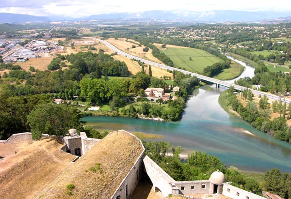| Vue sur la Durance à partir du haut de La Citadelle de Sisteron |