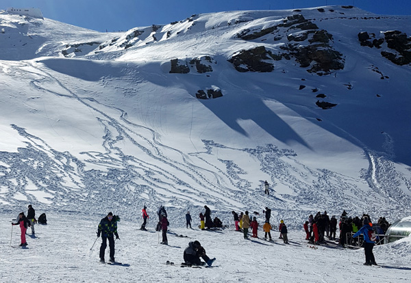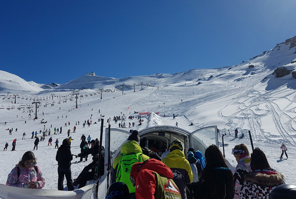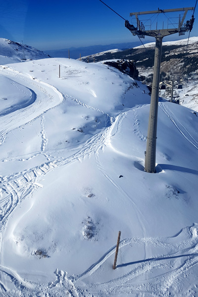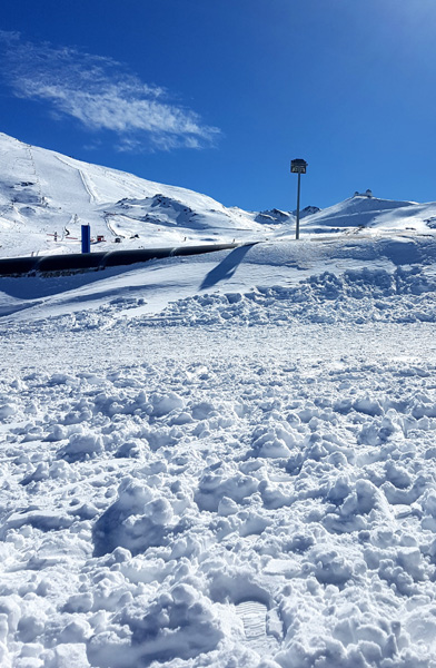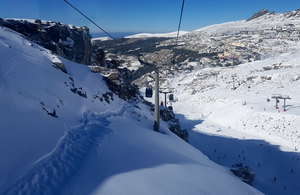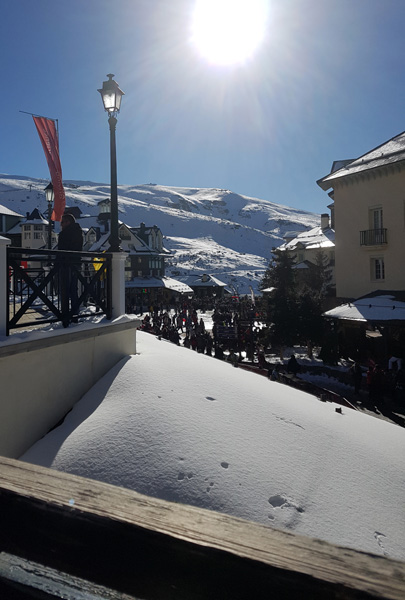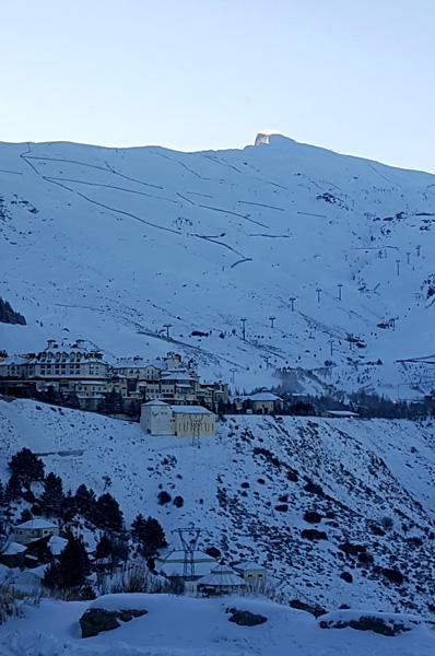 | Station de ski de Pradollano en contrebas du Pic du Veleta qui culmine à 3396 m d'altitude |