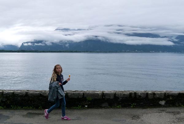 | La "Route de la corniche" à travers les vignobles en terrasses surplombant le lac Léman |