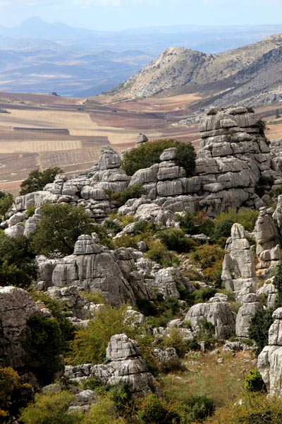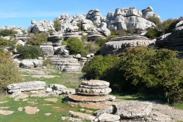 | Espace naturel situé sur la commune d'Antequera, le Torcal s'étend sur une superficie de 20 km². Célèbre pour les formes que l'érosion a donné à ses roches calcaires, il constitue un bel exemple de paysage karstique en Europe. Les origines du Torcal remontent au Jurassique, il y a 200 millions d'années. |