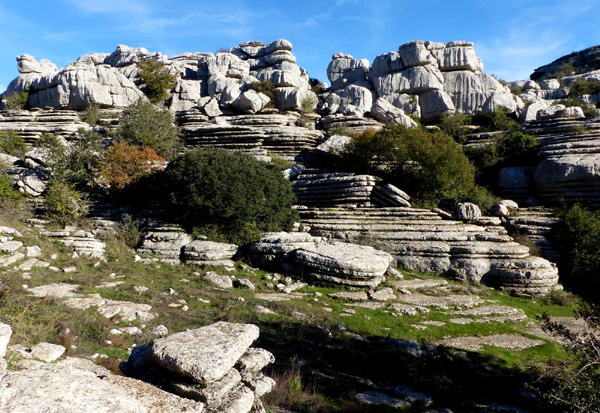 | Espace naturel situé sur la commune d'Antequera, le Torcal s'étend sur une superficie de 20 km². Célèbre pour les formes que l'érosion a donné à ses roches calcaires, il constitue un bel exemple de paysage karstique en Europe. Les origines du Torcal remontent au Jurassique, il y a 200 millions d'années. |