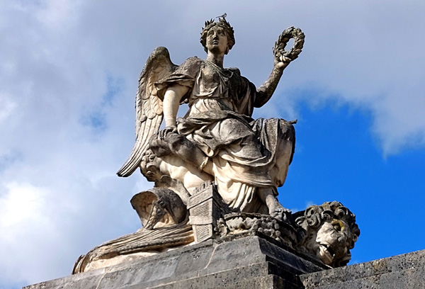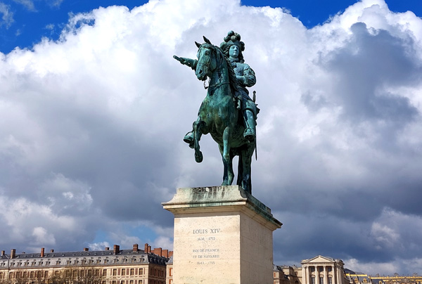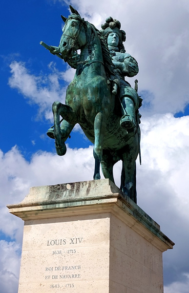 | Statue équestre de Louis XIV (1638-1715), dit "le Grand" ou "le Roi-Soleil", roi de France et de Navarre de 1643 (sous la régence de sa mère Anne d'Autriche jusqu'en 1651) à sa mort en 1715. |